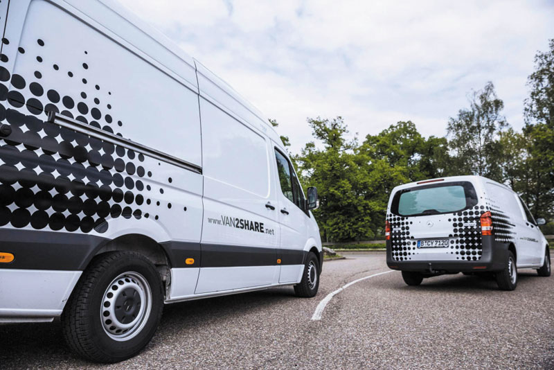 עם מערכת VAN2SHARE, מרצדס מציעה פתרון שיתוף דיגיטלי חדשני. הפתרון מקשר נהגים, כלי רכב והזמנות בפלטפורמה אחת. מלבד גישה נטולת מפתח לרכב, מתאפשרים שימוש משותף קל למספר נהגים ברכב המסחרי, יכולת של מנהל הצי לדעת מי נהג ברכב בכל רגע וניתוח נתונים נרחב כדי לנהל טוב יותר את הצי לכל הספקים והלקוחות, בלי קשר למותג הרכב.