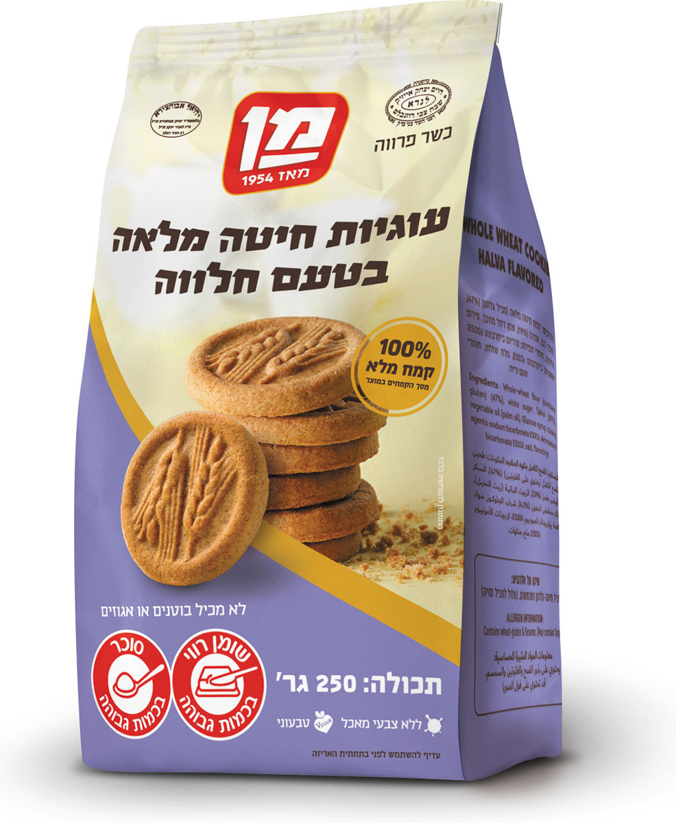 מותג הוופלים והעוגיות מן השיק עוגיות חיטה מלאה בטעם חלווה. העוגיות פריכות, עשויות מ-100% קמח מלא ועשירות בטחינה אמיתית. מותאמות גם לילדים.